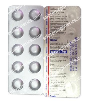Etoricoxib is used to treat acute and chronic osteoarthritis, ankylosing spondylitis, acute gouty arthritis, to relieve of chronic musculoskeletal pain. It contains etoricoxib, a selective inhibitor of cyclooxygenase-2 (COX-2), which blocks the formation of prostaglandins, substances responsible for inflammation, pain and fever symptoms. Etoricoxib has no effect on platelet function and gastrointestinal mucosa.