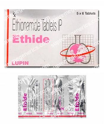 This anti-tuberculosis medication has a bacteriostatic effect (suppress bacterial protein synthesis) and depress growth and propagation of tuberculosis mycobacteria at intracellular and extracellular location. Ethionamide enhances phagocytosis at the center of tuberculosis inflammation which facilitates its resolution. Ethionamide may be used against Leprosy (Hansen's disease).